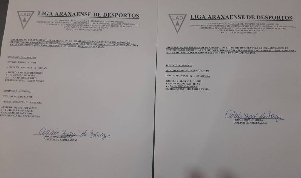 Além da Copa Regional Amapar neste sábado, 19 de março, o final de semana esportivo tem o início da Copa Araxá com dois jogos no domingo, 20. Confira a escala da arbitragem com estreias de Alex Júlio e Fabrício Reis, novos integrantes da Liga Araxaense de Desportos (LAD):