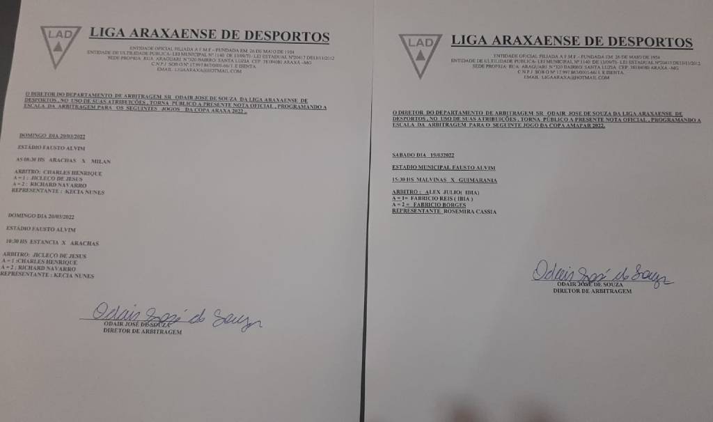 Além da Copa Regional Amapar neste sábado, 19 de março, o final de semana esportivo tem o início da Copa Araxá com dois jogos no domingo, 20. Confira a escala da arbitragem com estreias de Alex Júlio e Fabrício Reis, novos integrantes da Liga Araxaense de Desportos (LAD):