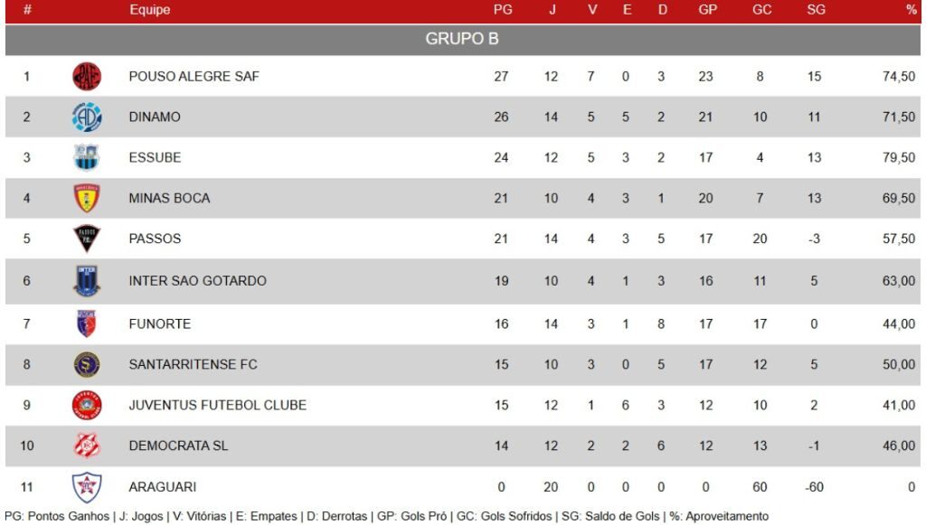Confira a classificação conjunta do GRUPO B: