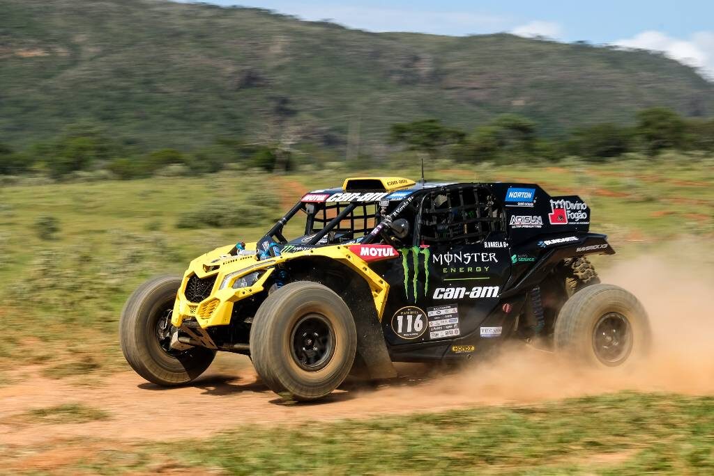 Integrante da ‘família da poeira’, Bruno Varela e o navegador Gustavo Bortolanza (Can-Am) saíram na frente entre os UTVs. A dupla superou por 1min24 Cristiano Batista e Robledo Nicoletti (Can-Am), que correm praticamente em casa – são de Patos de Minas. Reinaldo Varela, pai de Bruno, fechou o dia como o quarto mais rápido.