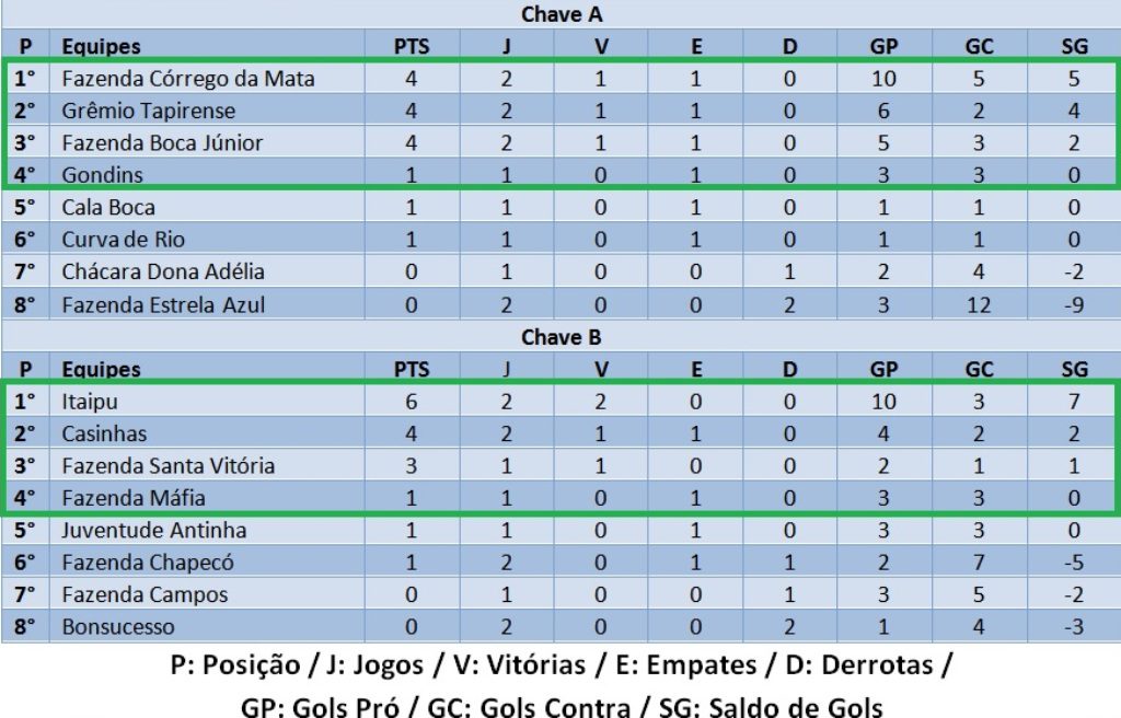 Marca Retangular Verde: G4 – Grupo dos classificados de cada grupo para a próxima fase