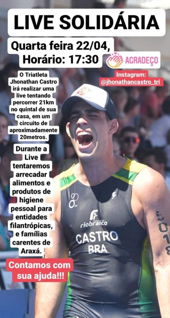 A live será no Instagram do triatleta: Jhonathancastro_tri
