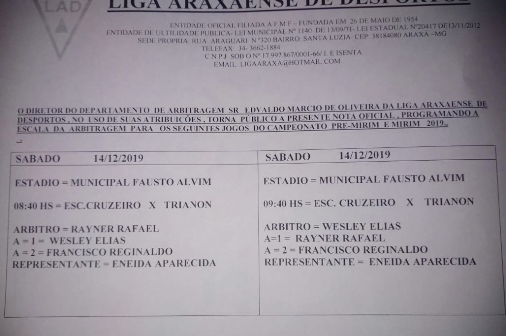 Liga Araxaense de Desportos define arbitragem para as finais do Pré-Mirim e Mirim