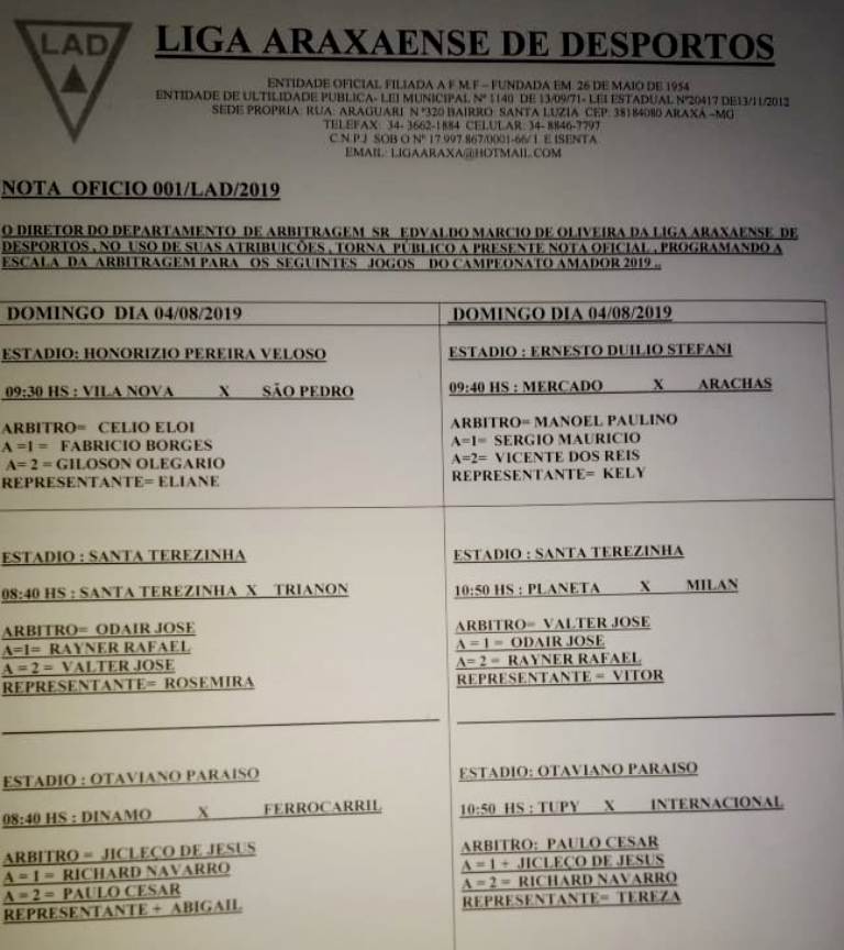 Liga Araxaense de Desportos define arbitragem para jogos da 1ª rodada do Amadorão