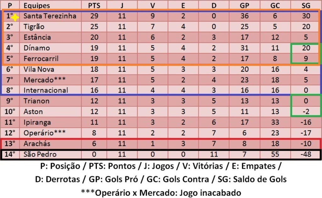 Marca Verde: Equipes com a mesma pontuação na tabela de classificação