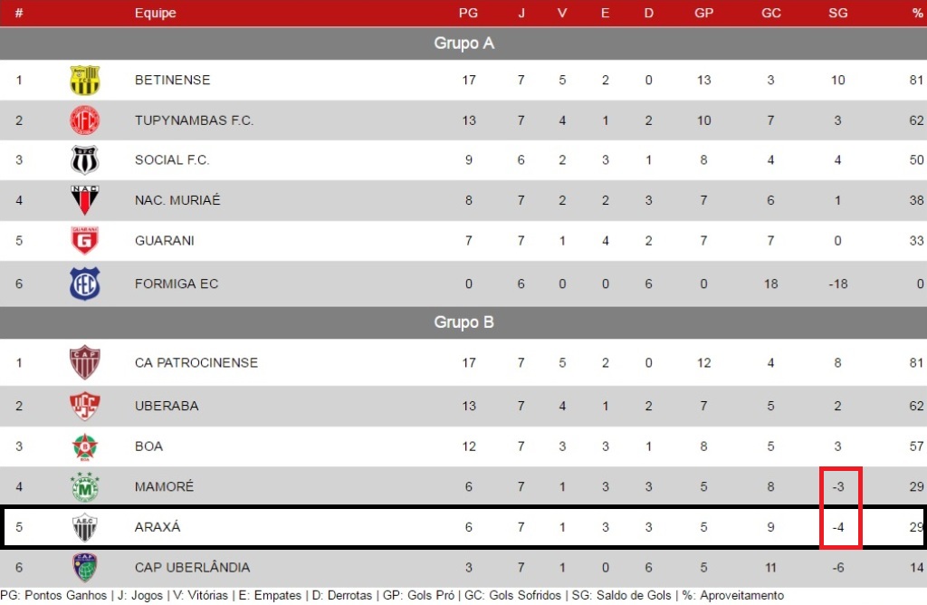 Marca Vermelha: Critério de Desempate que o Araxá perde para o Mamoré