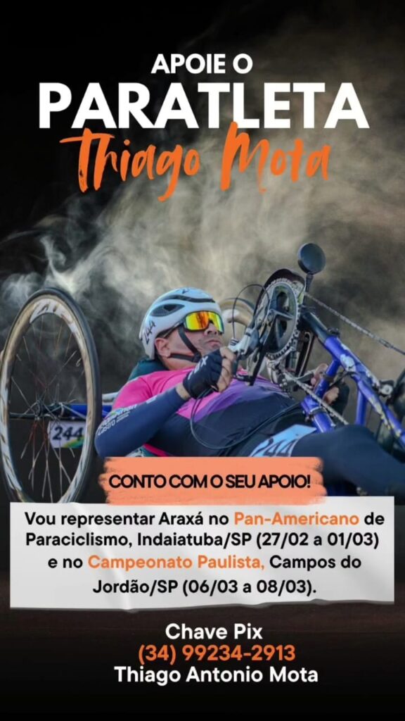 O paratleta Thiago Antonio Mota mobiliza apoiadores nas redes sociais para conseguir recursos e participar de duas competições importantes nas próximas semanas. Em vídeo, ele pediu a ajuda da população por meio de contribuições financeiras e também abriu espaço para possíveis patrocinadores.