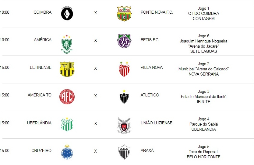 Jogos da 1ª rodada do Campeonato Mineiro Sub-20