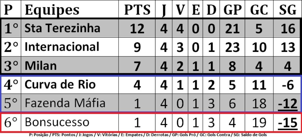 Marcação em negrito nos quatro primeiros lugares – Equipes que, nesse momento, estariam classificadas