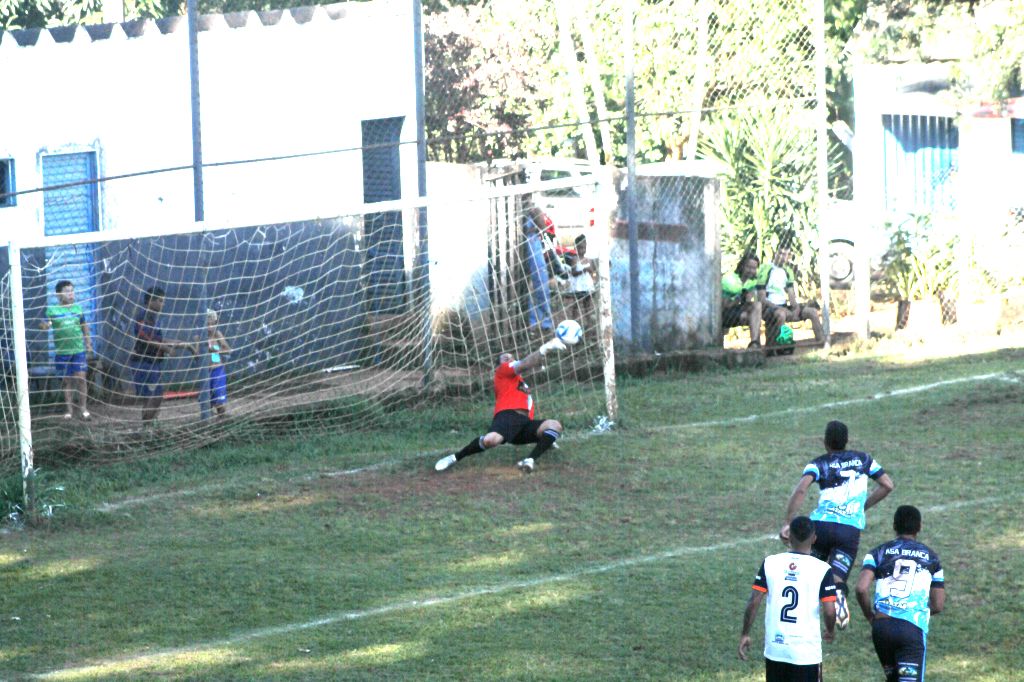 O pênalti defendido pelo goleiro Cleiton, do Asa Branca – Fotos: Caio César Aureliano Na Batida do Esporte
